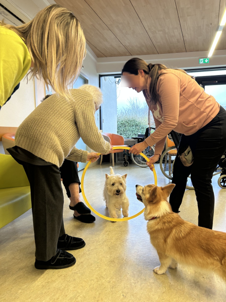 Résidence de Piney > Actualités > Médiation animale Médiation animale Publiée le 21/02/2026 Le jeudi 19 février, Woofy et Compagnie nous a rendu visite pour un beau moment de partage et de tendresse aux côtés de Twix et Biscuit.
